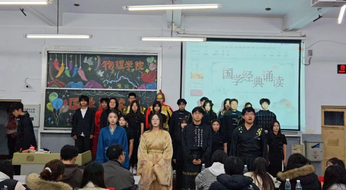 为弘扬中华优秀传统文化,传承千年的文明薪火,2025年11月21日18时30分,物理学院在龙宫204教室举行了2025级学生国学诵读比赛,同学们用心筹备、热忱参与,在互动中共同品味华夏文化的精髓要义与独特韵味。